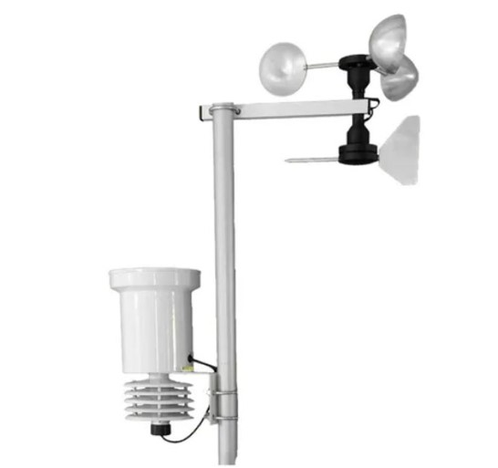 Sensores de umidade, temperatura, pressão atmosférica, velocidade e direção do vento, pluviometro.